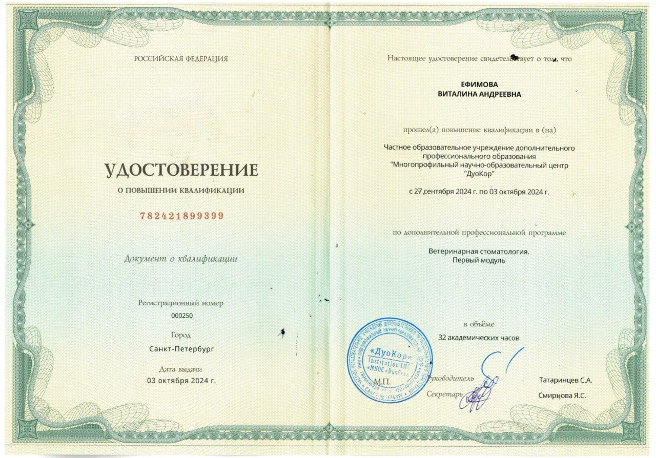 2024 - Многопрофильный научно-образовательный центр «ДуоКор» «Ветеринарная стоматология. Первый модуль»